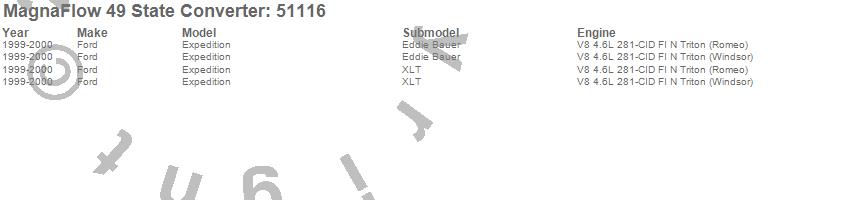 Below is an abreviated list of applications for the Direct Fit Catalytic Converter.