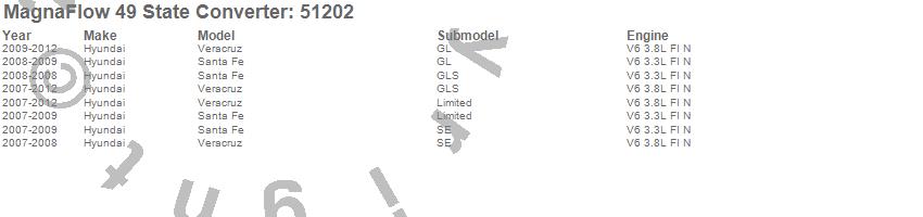 Below is an abreviated list of applications for the Direct Fit Catalytic Converter.