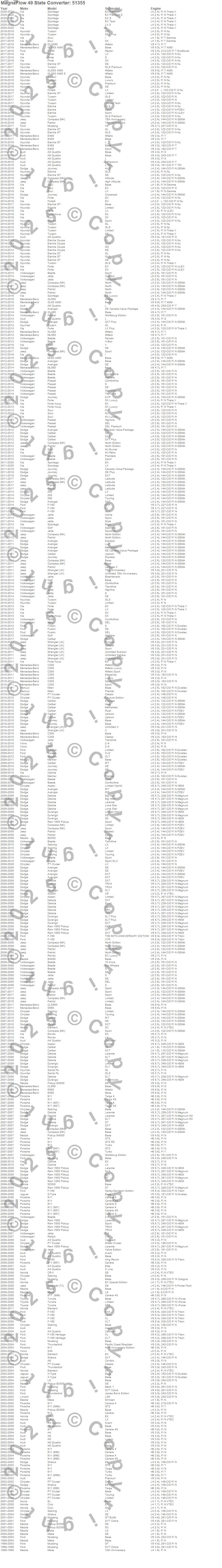 Below is an abreviated list of applications for the Universal-Fit Catalytic Converter.