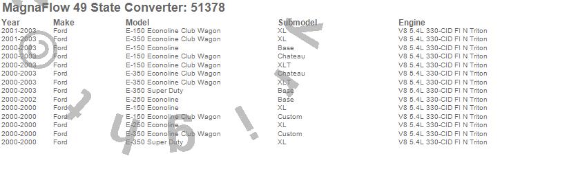 Below is an abreviated list of applications for the Direct Fit Catalytic Converter.
