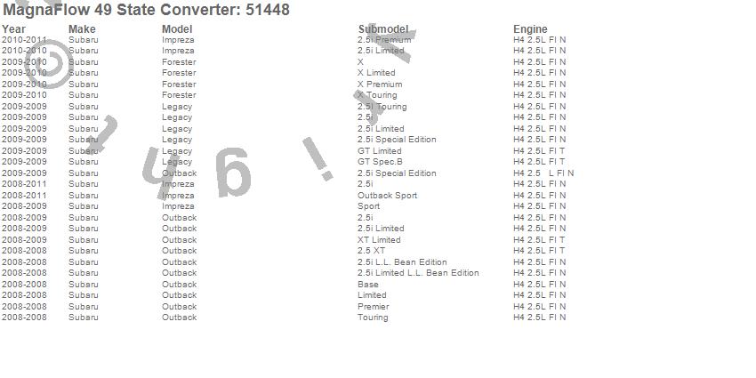 Below is an abreviated list of applications for the Direct Fit Catalytic Converter.