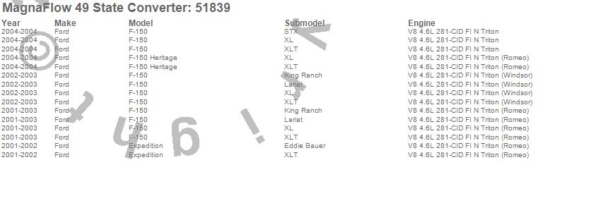 Below is an abreviated list of applications for the Direct Fit Catalytic Converter.