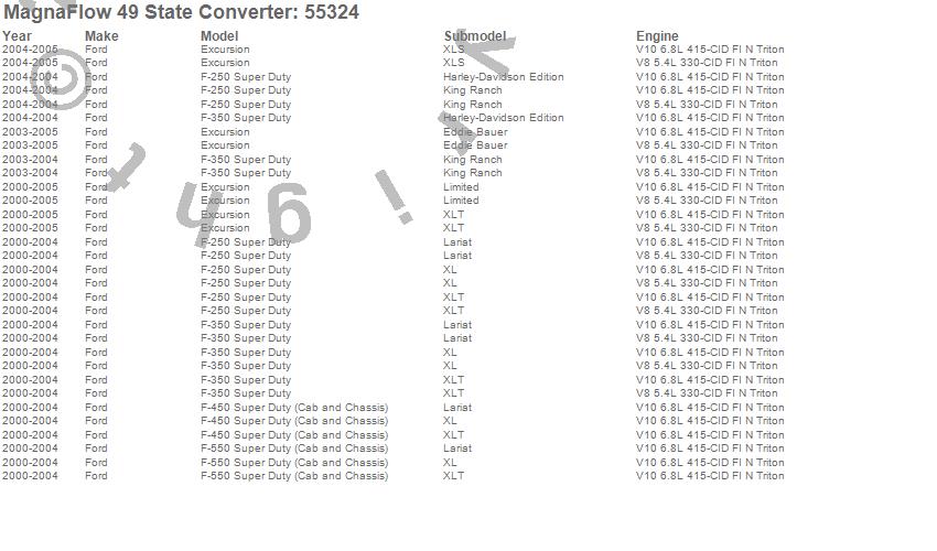 Below is an abreviated list of applications for the Direct Fit Catalytic Converter.