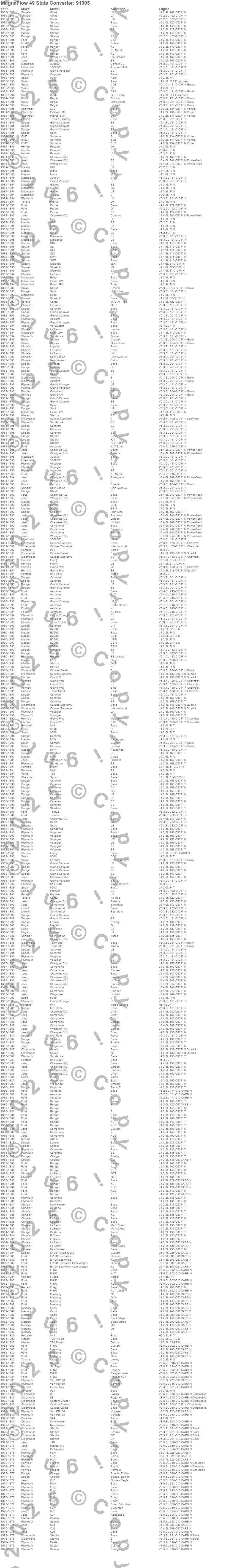 Below is an abreviated list of applications for the 91000 Series OBDII Compliant Universal Catalytic Converter.