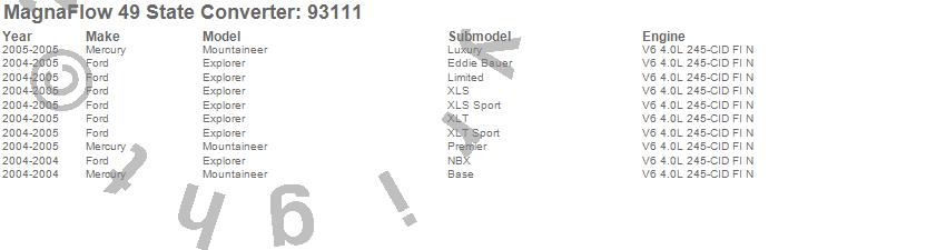 Below is an abreviated list of applications for the 93000 Series Direct Fit Catalytic Converter.