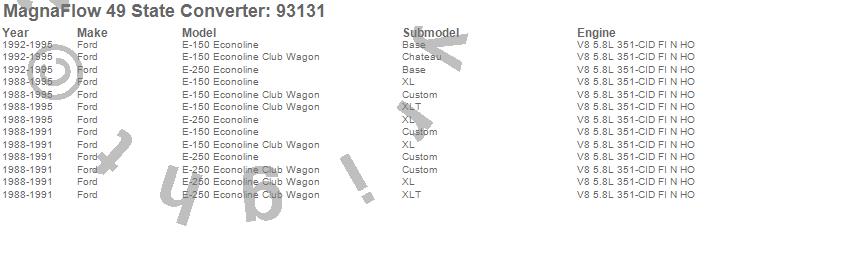 Below is an abreviated list of applications for the 93000 Series OBDII Compliant Direct Fit Catalytic Converter.