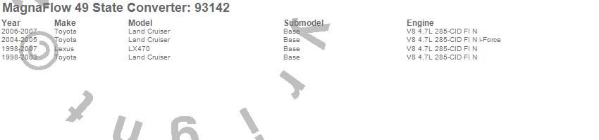 Below is an abreviated list of applications for the 93000 Series Direct Fit Catalytic Converter.