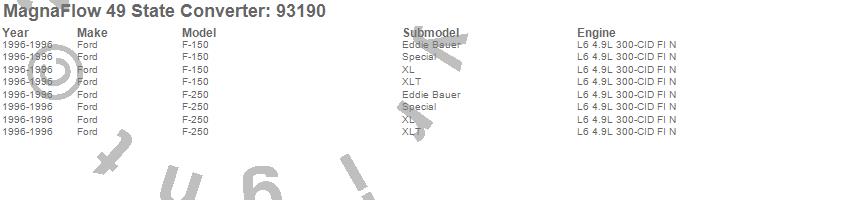 Below is an abreviated list of applications for the 93000 Series Direct Fit Catalytic Converter.