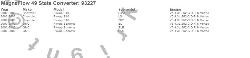 Below is an abreviated list of applications for the 93000 Series Direct Fit Catalytic Converter.