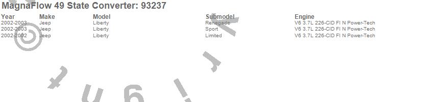 Below is an abreviated list of applications for the 93000 Series Direct Fit Catalytic Converter.
