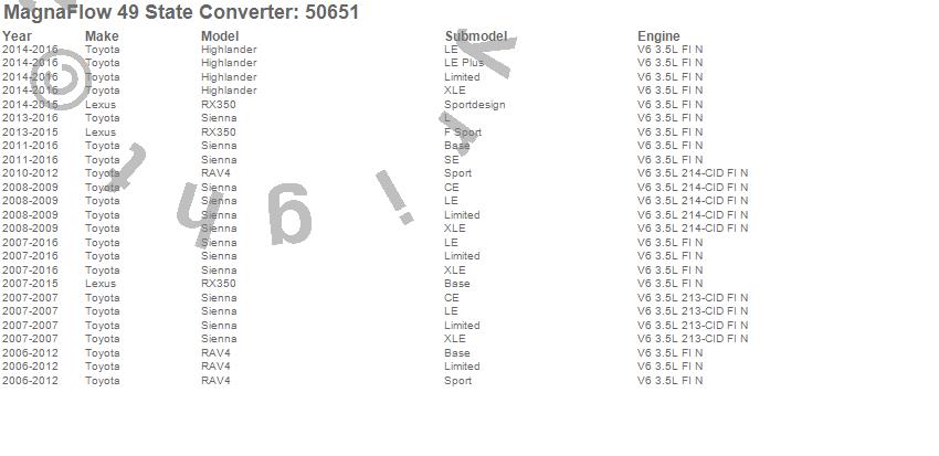 Below is an abreviated list of applications for the Direct Fit Catalytic Converter.
