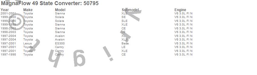Below is an abreviated list of applications for the Direct Fit Catalytic Converter.