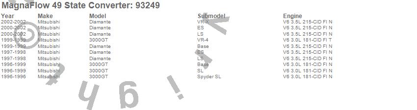 Below is an abreviated list of applications for the 93000 Series OBDII Compliant Direct Fit Catalytic Converter.