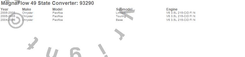 Below is an abreviated list of applications for the 93000 Series Direct Fit Catalytic Converter.