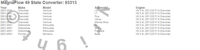 Below is an abreviated list of applications for the 93000 Series Direct Fit Catalytic Converter.