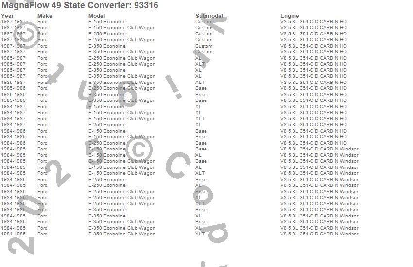 Below is an abreviated list of applications for the 93000 Series OBDII Compliant Direct Fit Catalytic Converter.