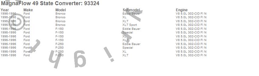 Below is an abreviated list of applications for the 93000 Series OBDII Compliant Direct Fit Catalytic Converter.