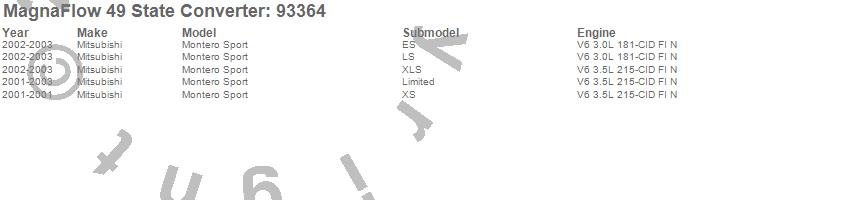 Below is an abreviated list of applications for the 93000 Series Direct Fit Catalytic Converter.