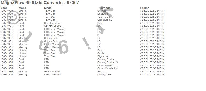 Below is an abreviated list of applications for the 93000 Series OBDII Compliant Direct Fit Catalytic Converter.