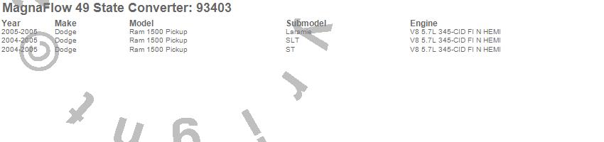 Below is an abreviated list of applications for the 93000 Series Direct Fit Catalytic Converter.