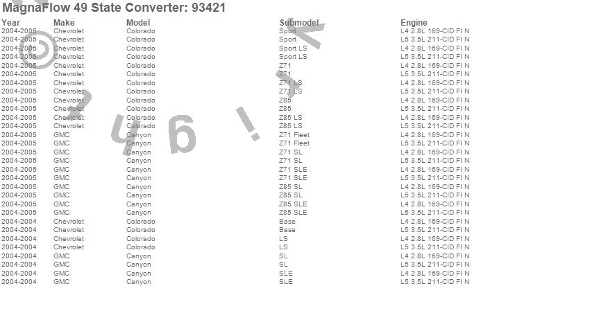 Below is an abreviated list of applications for the 93000 Series Direct Fit Catalytic Converter.