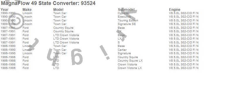 Below is an abreviated list of applications for the 93500 Series Dual Air Tube Non-OBDII Universal Catalytic Converter.