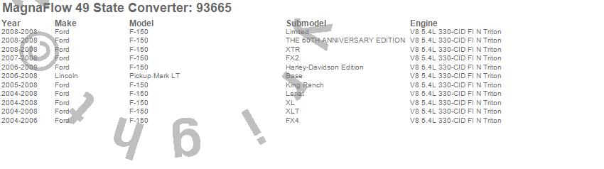 Below is an abreviated list of applications for the 93000 Series OBDII Compliant Direct Fit Catalytic Converter.