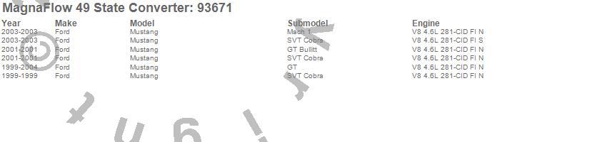 Below is an abreviated list of applications for the 93000 Series Direct Fit Catalytic Converter.