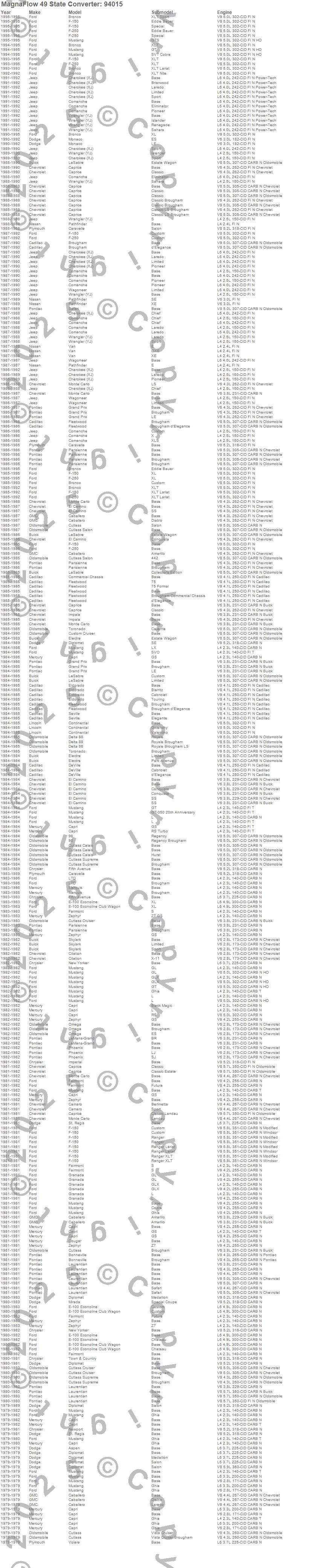 Below is an abreviated list of applications for the 94000 Series Air Tube Non-OBDII Universal Catalytic Converter.