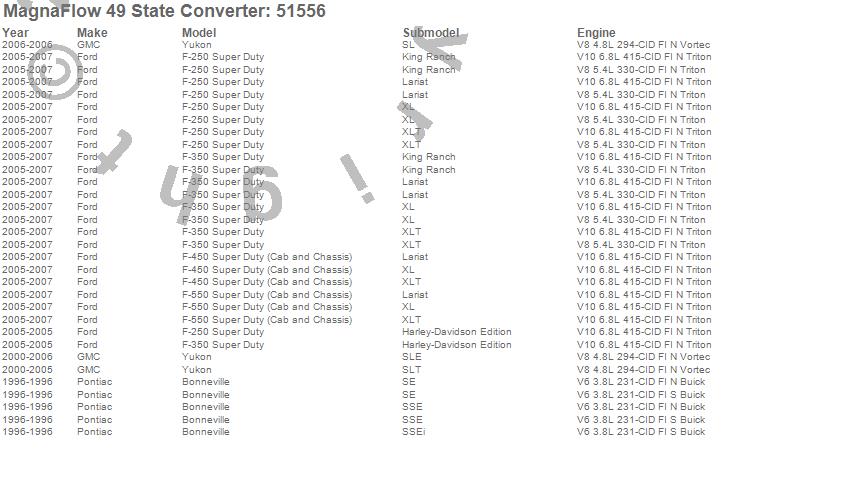 Below is an abreviated list of applications for the Universal-Fit Catalytic Converter.