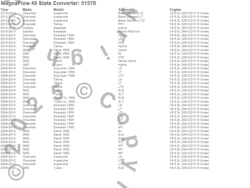 Below is an abreviated list of applications for the Direct Fit Catalytic Converter.