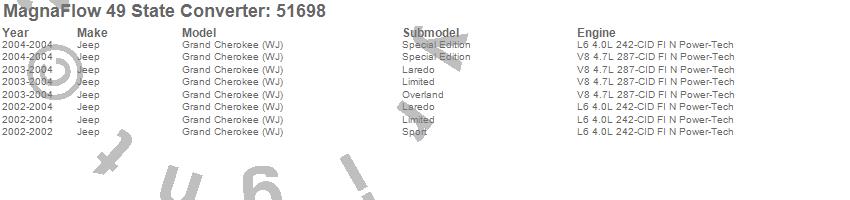 Below is an abreviated list of applications for the Direct Fit Catalytic Converter.