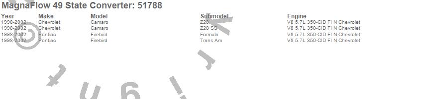 Below is an abreviated list of applications for the Direct Fit Catalytic Converter.