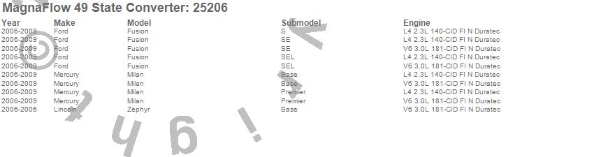 Below is an abreviated list of applications for the Direct Fit Catalytic Converter.