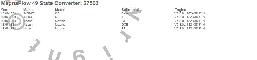 Below is an abreviated list of applications for the Direct Fit Catalytic Converter.