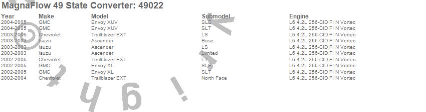 Below is an abreviated list of applications for the Direct Fit Catalytic Converter.
