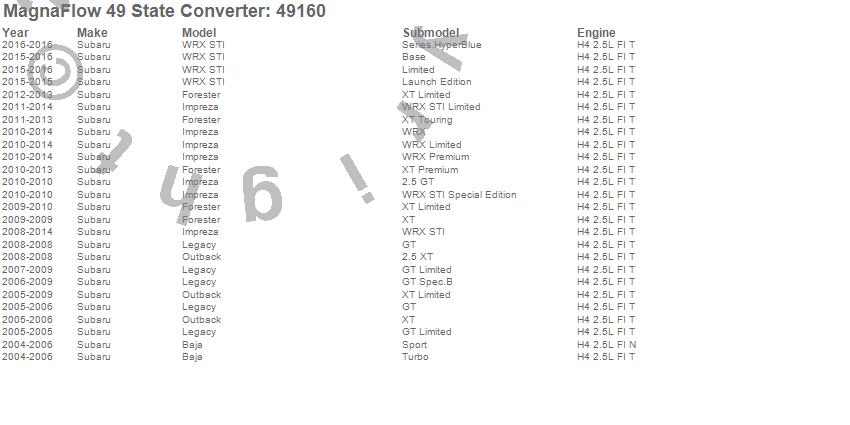 Below is an abreviated list of applications for the Direct Fit Catalytic Converter.