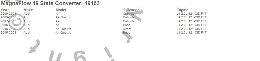Below is an abreviated list of applications for the Direct Fit Catalytic Converter.