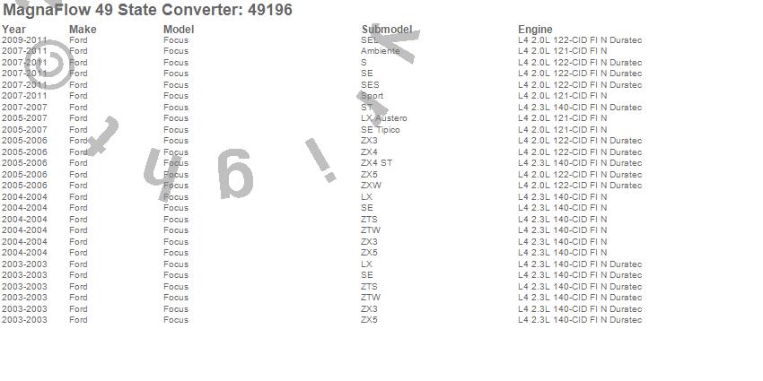 Below is an abreviated list of applications for the Direct Fit Catalytic Converter.