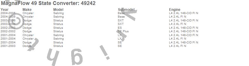Below is an abreviated list of applications for the Direct Fit Catalytic Converter.