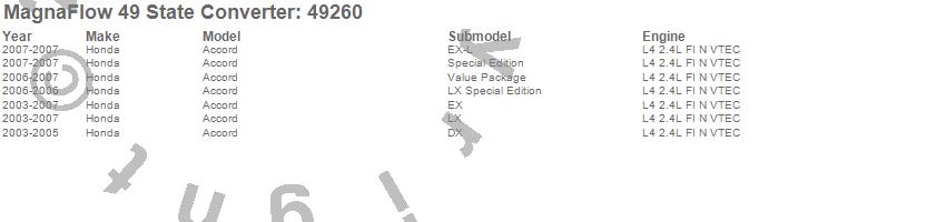 Below is an abreviated list of applications for the Direct Fit Catalytic Converter.