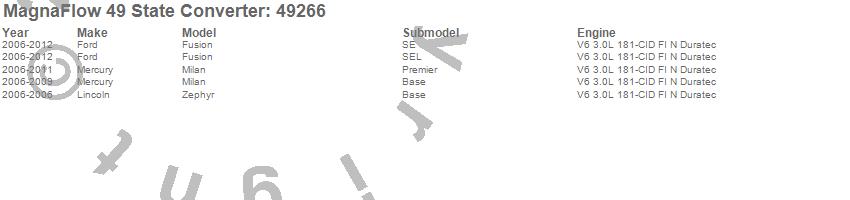 Below is an abreviated list of applications for the Direct Fit Catalytic Converter.