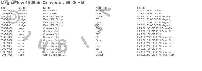 Below is an abreviated list of applications for the Heavy Metal Series Universal Catalytic Converter.