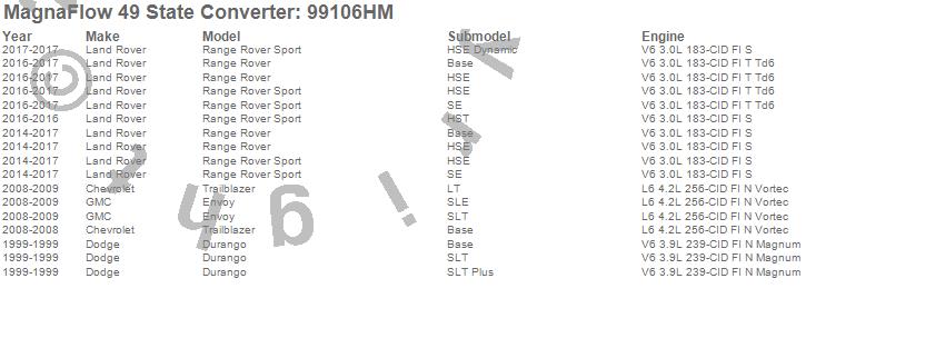 Below is an abreviated list of applications for the Heavy Metal Series Universal Catalytic Converter.