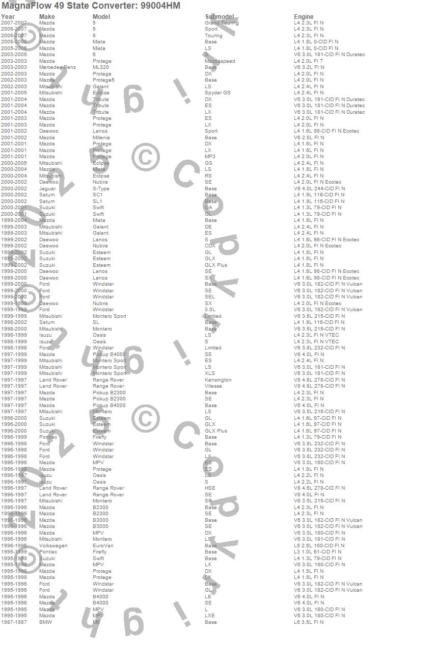 Below is an abreviated list of applications for the Heavy Metal Series Universal Catalytic Converter.