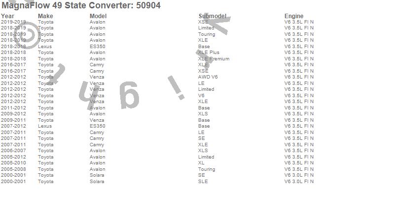 Below is an abreviated list of applications for the Direct Fit Catalytic Converter.