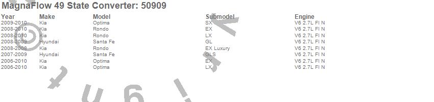 Below is an abreviated list of applications for the Direct Fit Catalytic Converter.