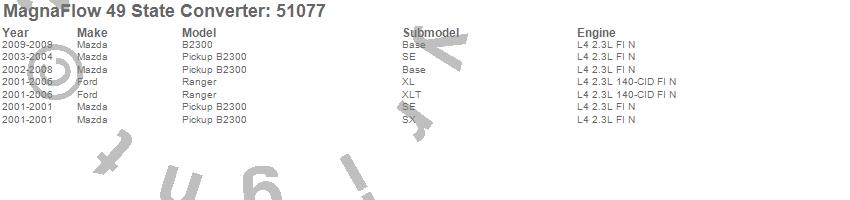 Below is an abreviated list of applications for the Direct Fit Catalytic Converter.