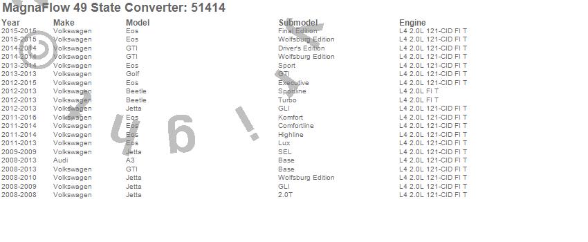 Below is an abreviated list of applications for the Direct Fit Catalytic Converter.