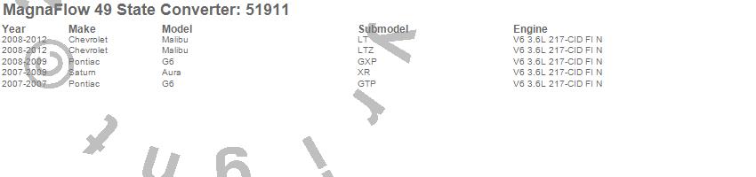 Below is an abreviated list of applications for the Direct Fit Catalytic Converter.